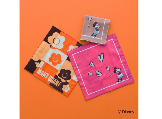ジャカードで大胆に表現されたミッキーマウスとミニーマウスのアートがキュートなタオルハンカチ。ミニーマウスの帽子に飾られたお花がマリークヮントのアイコン”デイジー”と対話しているような本企画ならではのスペシャルなデザインです。