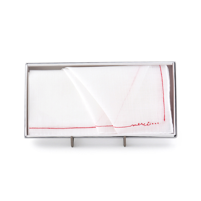 “Merci(ありがとう)”の気持ちをさりげなく込められるデザインで、母の日のプレゼントにぴったりのハンカチです。