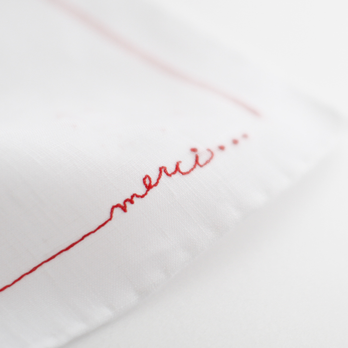 - 刺繍でMerci(ありがとう)をデザインしたおしゃれさがポイント