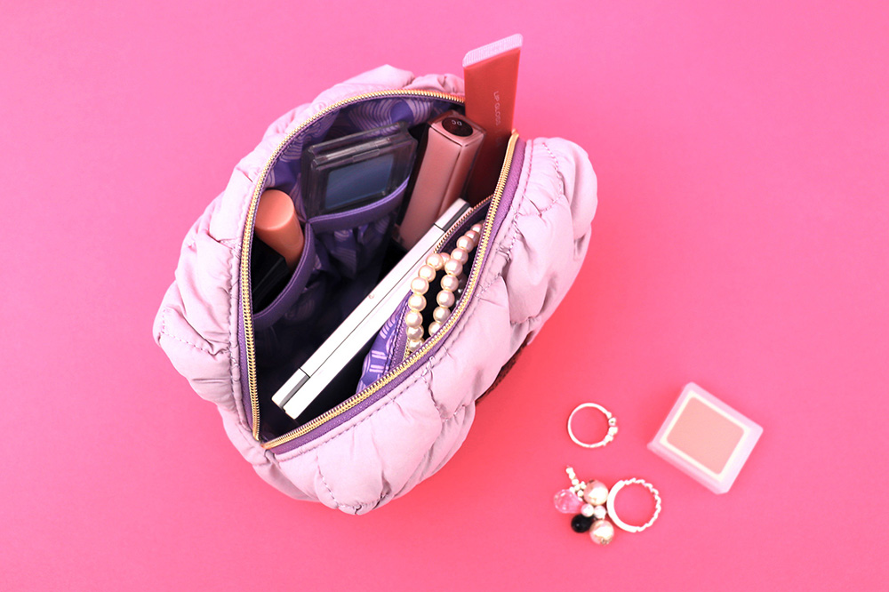 はファスナーで開閉でき、アクセサリーなど細々したものを入れるのにも便利です。