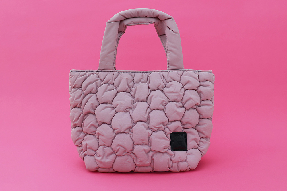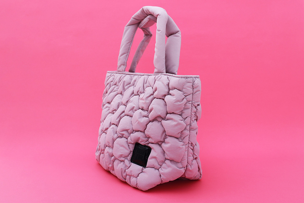 泡を思わせるモコモコとしたキルティングが 印象的な本シリーズは、薄手のナイロン生地と綿を組 み合わることで、ふんわりと軽やかなエアリー感を表 現。