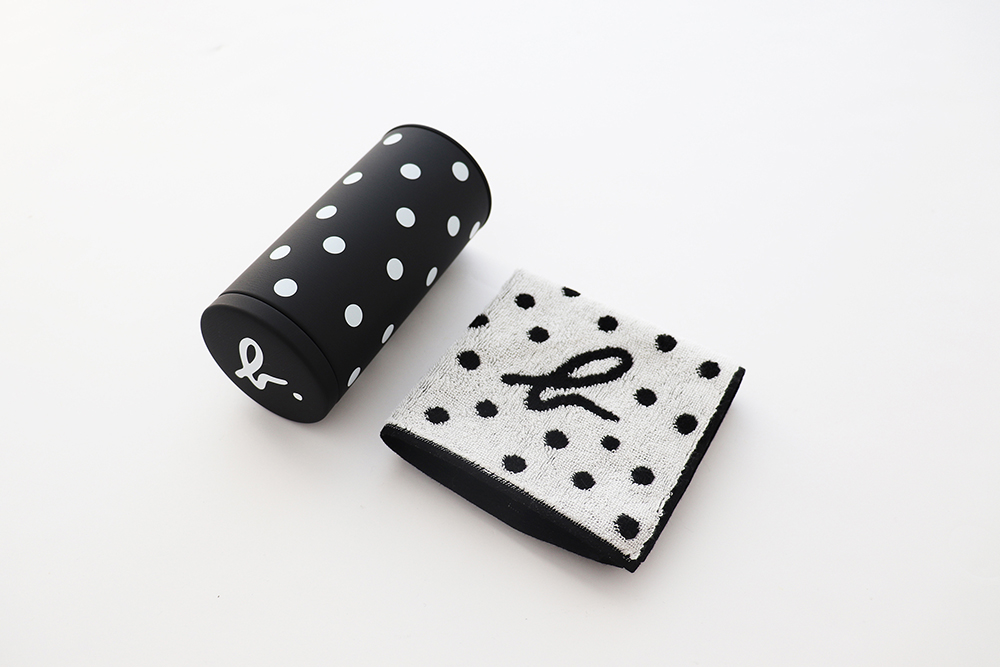 円柱缶パッケージ入りタオル(ドット)¥1,980(税込) 1柄1配色