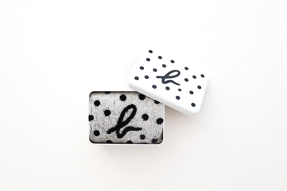 水玉にb.ロゴがアクセントになった、シンプルで洗練された缶入りギフトです。