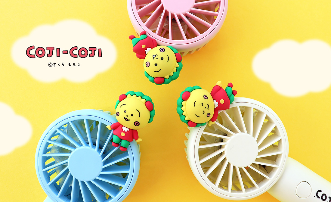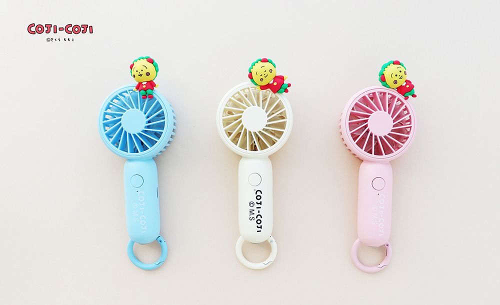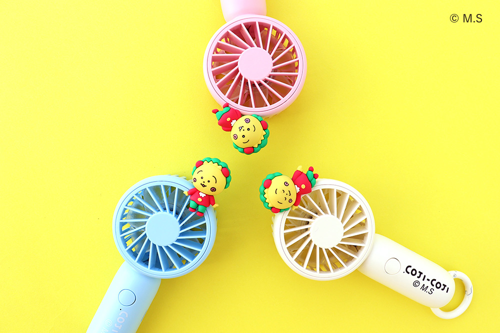 軽量でコンパクトなハンディファンに、コジコジのフィギュアをあしらった、見ているだけでも癒されるアイテム。