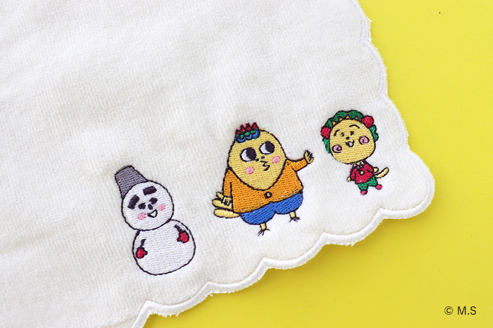 コジコジや個性的なキャラクターたちの刺繍がポイントのタオルハンカチーフです。