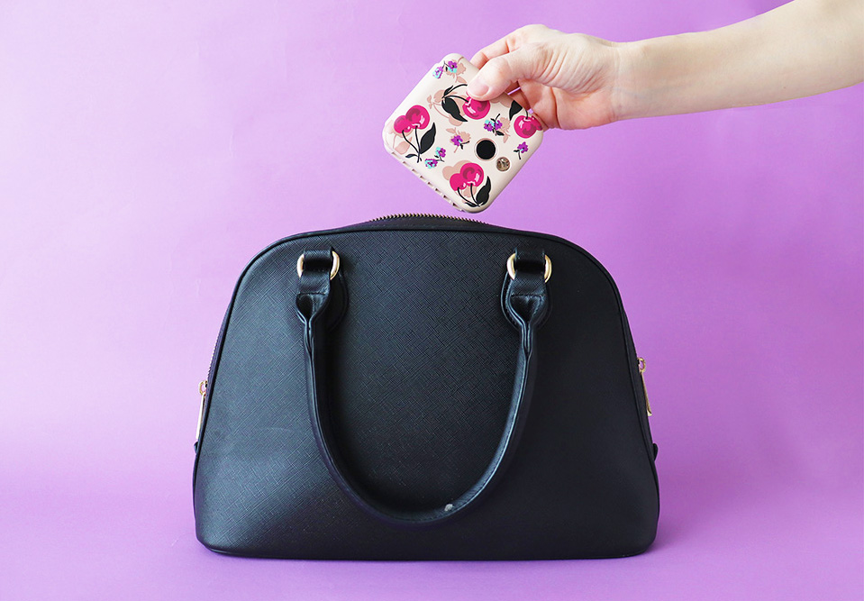 ▲バッグに収まるコンパクト設計。液晶表示で5段階の調整が見やすい仕様です。