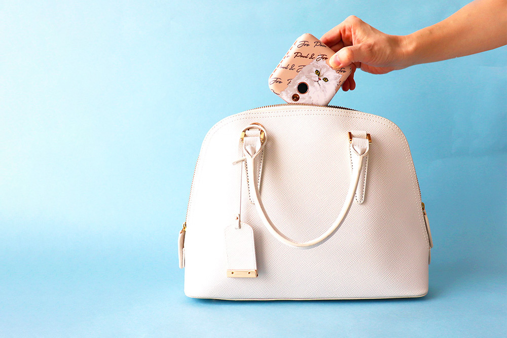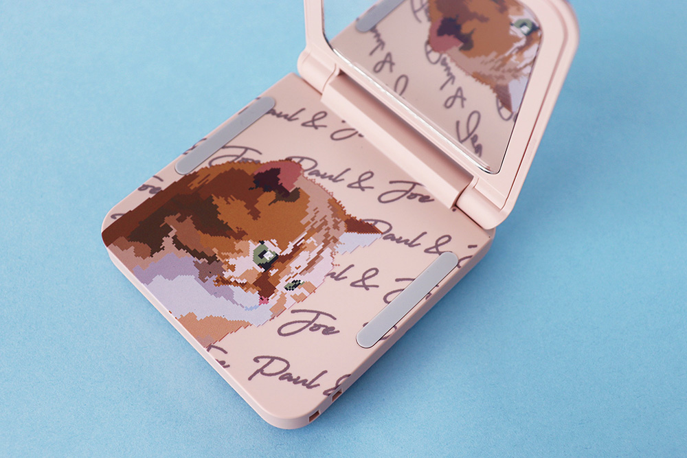 ▲ ミラーを内蔵、滑り止め付きのスマートフォンスタンド機能を搭載。可愛さと快適さを兼ね備えたデザインです。