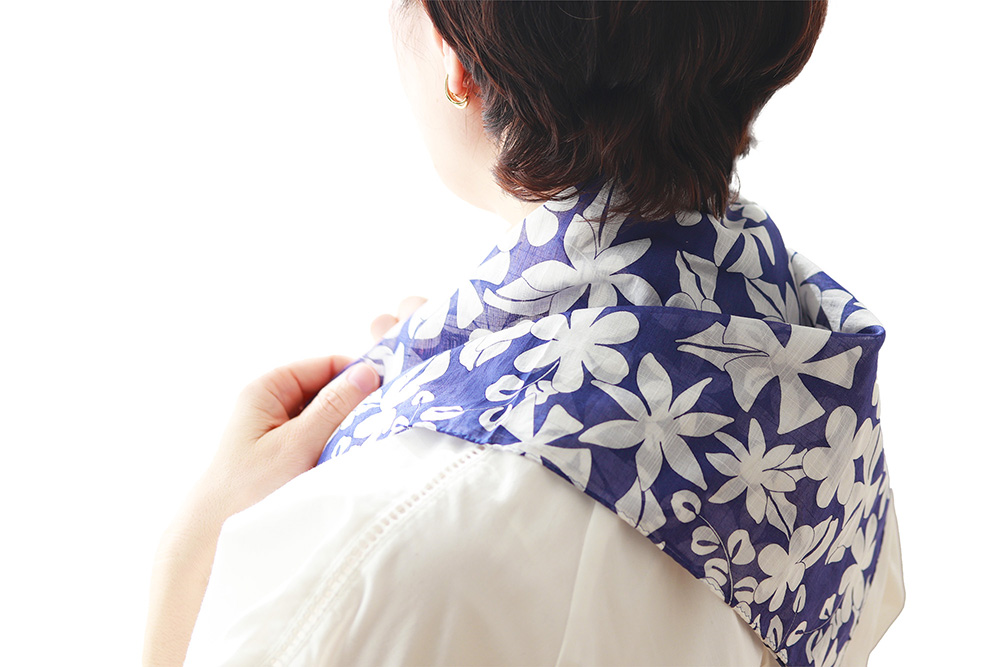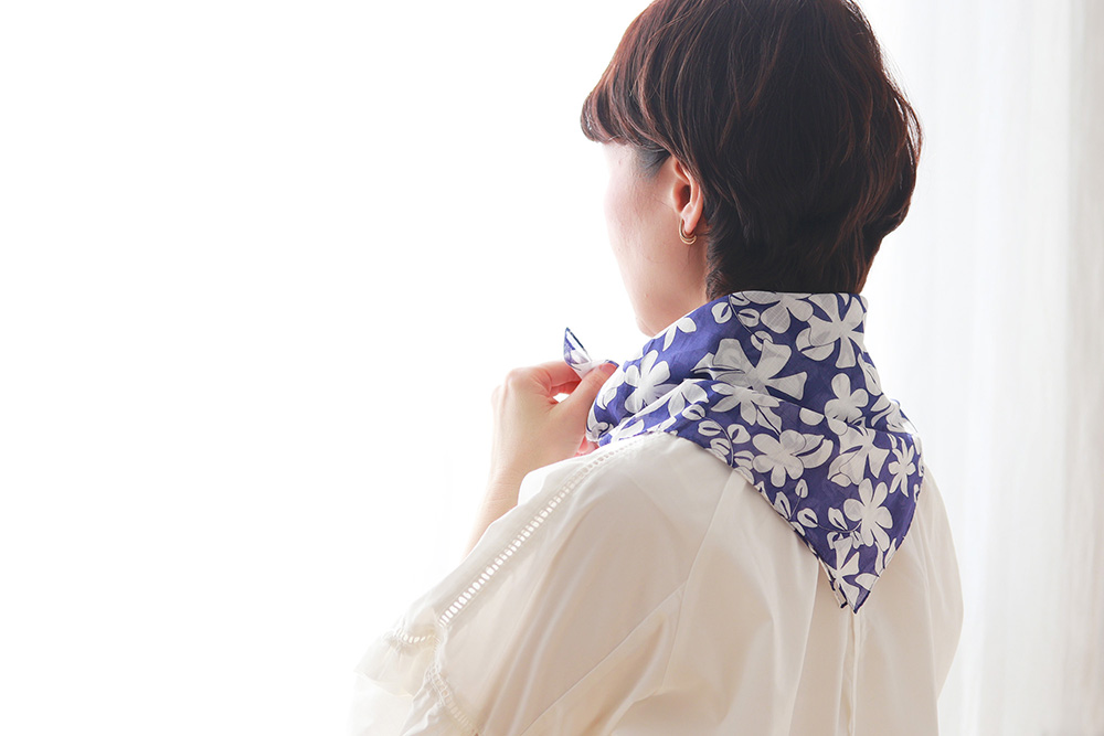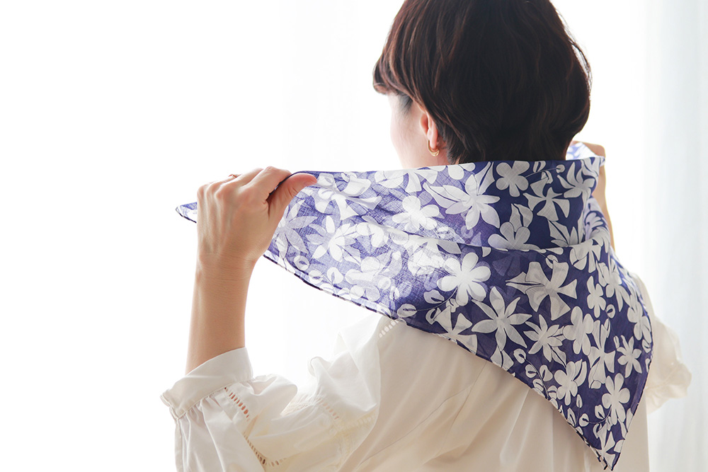 見た目はあくまで上品なネッカチーフのまま、自然に暑さ対策が可能です。